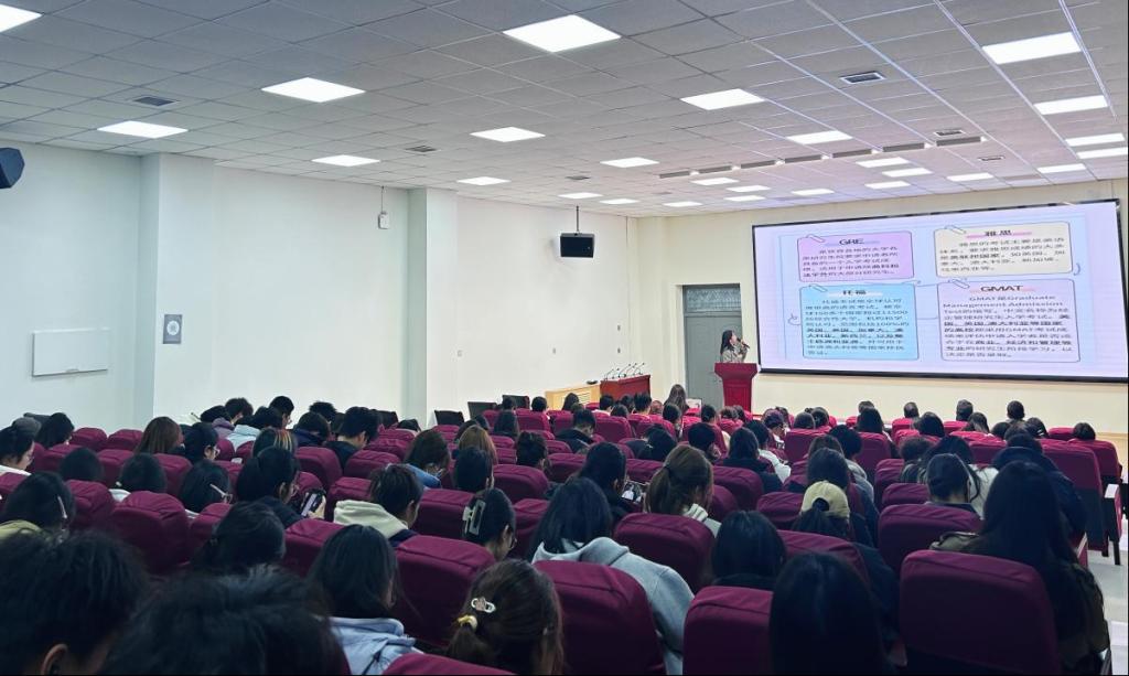 宣讲会上,罗丹老师介绍了留学与游学、交换的区别,重点讲解了目前与公司有合作关系的各大院校的地理位置、入学条件及课程设置。她指出,目前,公司在海外升学方面已经有上百例成功案例。成熟的留学项目就是要通过与世界各地的院校合作,为同学们插上理想的羽翼,提供丰富的教育资源和多样的学习体验。张梓涵老师从提高学术能力、优化职业竞争力、重塑价值观、做好留学准备四个方面进行了经验分享。她指出,相较于国内考研,选择留学不仅可以很好地提升个人的外语表达能力、自主创新能力,也能拓展学科视野和思维方式、拓宽职业发展空间,在国际比较视野下进一步提升社会责任意识。