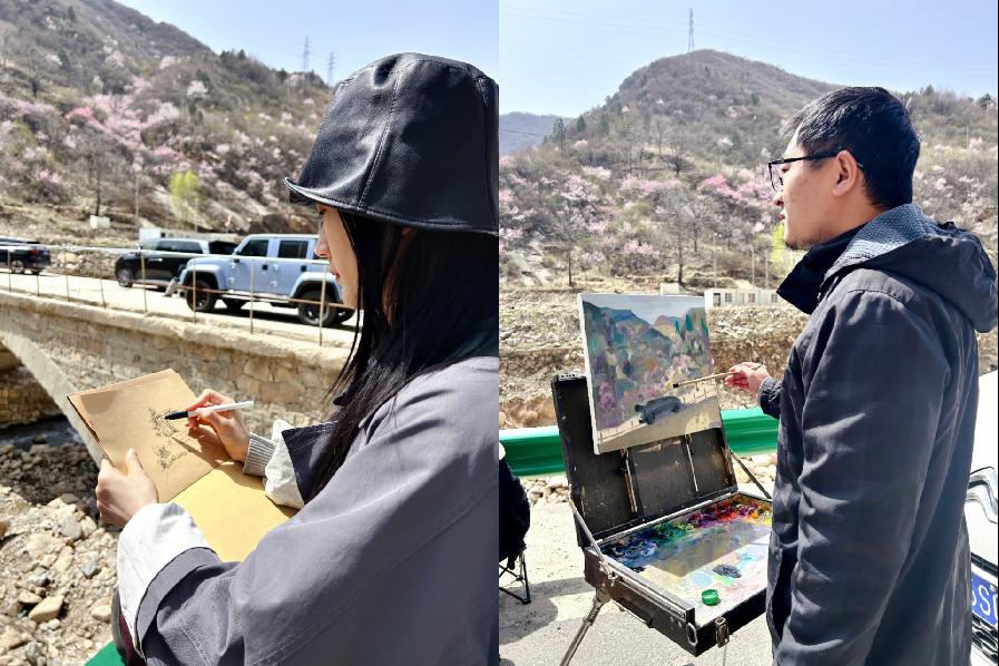 葫芦岔村既是生态田园的“天然画廊”,也是红色精神的传承地。活动中,党员教师们以画笔为媒,以山木为卷,深入田间地头、村居院落,捕捉红色文化与自然景观交融的独特魅力。他们用油画、水彩、速写等艺术形式,将葫芦岔村的青山绿水与革命历史印记巧妙结合,创作出一幅幅“景中有史、画中有魂”的红色主题作品。