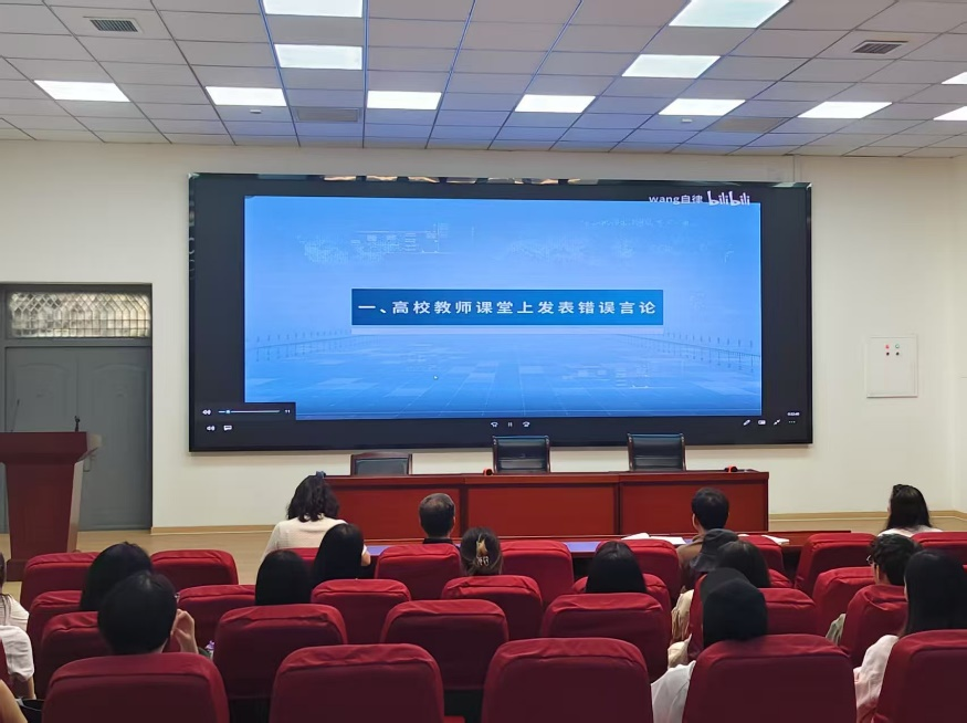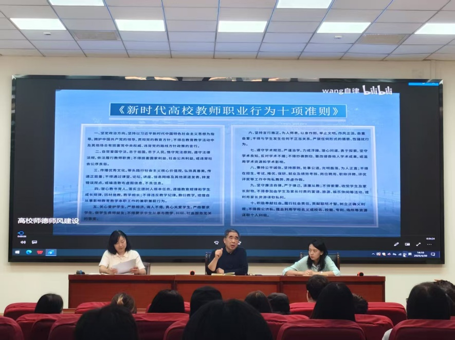 接着,全体教职工观看《高校师德失范典型案例》视频,并结合教育部颁发的《新时代高校教师职业行为十项准则》,对典型案例进行深刻剖析。通过“课堂上发表错误言论”“网络上发布不良信息”“教师学术不端行为”等十个违规案例的警示,让参会教师切身感受师德失范对教育事业造成的严重损害,深化对“师德红线”的认知。