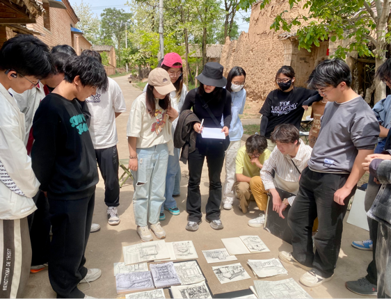 邢家塬村地处秦陇交界,北依千山,南望秦陇大地,既是黄胄先生创作《洪荒风雪》等传世名作的灵感源泉,也是国家级非遗西秦刺绣、千阳剪纸的传承重镇。师生们通过参观黄胄故居纪念馆、观摩黄胄先生的画作,在土窑洞斑驳的木桌画案间,深刻感受艺术大师“生活即艺术”的创作理念。