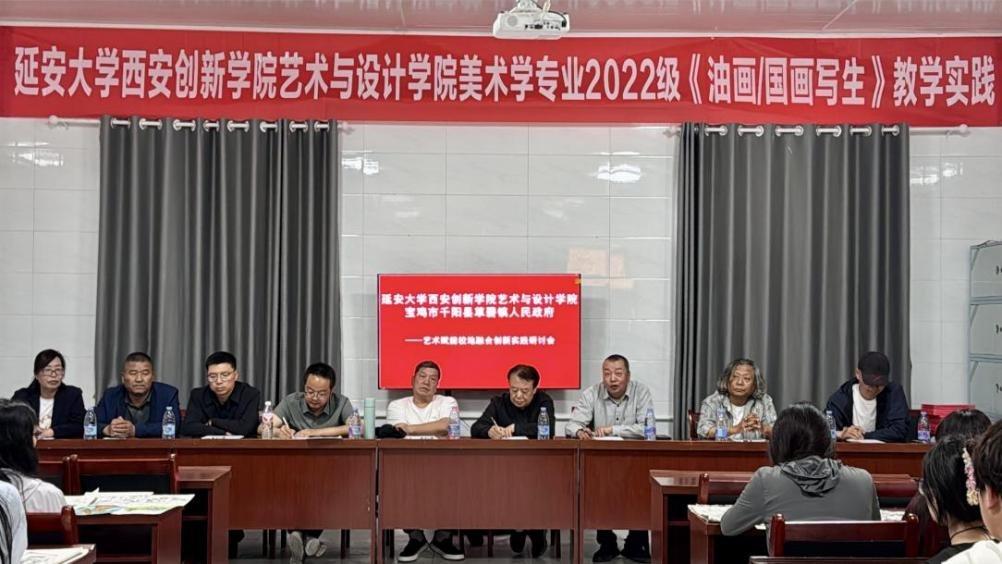 会上,赵雪伟对千阳县草碧镇人民政府及黄胄故居写生基地为公司师生提供的周到服务表示感谢。杨成成介绍了千阳县草碧镇邢家塬村乡村建设的基本情况及发展状况,并希望以此次教学活动为契机,为乡村注入新的活力。巨石希望公司师生以此次活动为契机,以笔为锄、以纸为田,通过辛勤劳动塑造艺术生活。刘丹表示,这次写生活动既是艺术教育的创新探索,更是高校服务乡村文化振兴的责任担当。