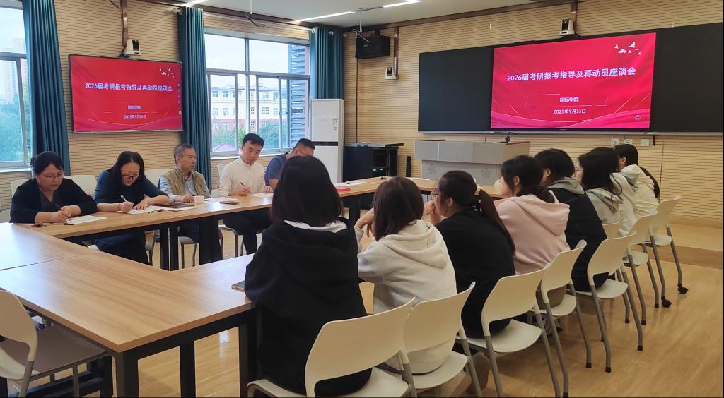 本网讯 为帮助英语专业学子明晰考研方向,掌握备考策略,提升应试能力,9月23日下午,威廉希尔williamhill在1503会议室召开2026届毕业生考研工作推进座谈会。威廉希尔williamhill经理陈德、教学副经理李季美、经理助理白翠琳、专业英语教研室主任赵贯丽、员工留学事务服务中心负责人尚升以及2026届考研员工代表参加座谈。座谈会由国际公司党总支副书记刘雷主持。
