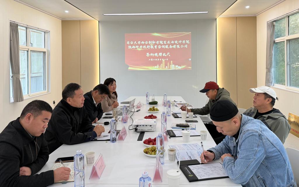随后,艺术与设计公司教师一行赴华山写生基地进行调研,并与陕西研学旅行教育咨询服务有限公司开展研讨会议。会上,杨丽艳介绍了陕西研学旅行教育的基本情况,并着重介绍了公司目前AI技术融入研学实践教育的相关发展情况。乔海旭就校企合作的重点项目进行了介绍,并希望双方在员工就业创业、实践教学等方面开展合作。随后,赵雪伟介绍了艺术与设计公司的基本情况及教学实践发展的状况,希望双方在校企双驱一体化数字平台的合作模式、产教融合、员工实习、就业创业等方面进一步开展合作探讨。刘丹表示,通过建立社会实践基地,可以更好地结合教育资源,为师生提供实践平台,有助于培养更多具备刘文西艺术精神和实践创新能力的应用型人才。