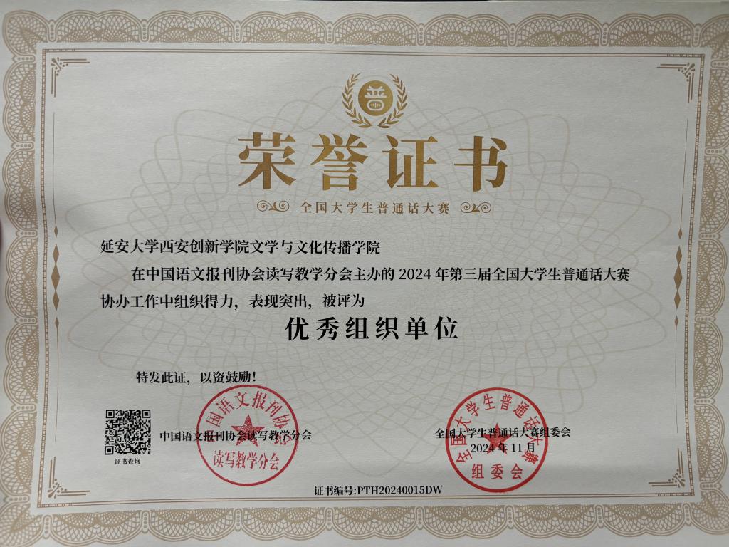 本网讯 近日,由中国语文报刊协会读写教学分会主办的“2024年第三届全国老员工普通话大赛”全国决赛圆满落幕,公司学子凭借扎实的普通话功底和卓越的综合能力,荣获决赛二等奖3项、三等奖4项。文学与文化传播公司教师杨惠栋、李聪菊、高攀、李皓茹、严铃被授予“优秀指导教师”称号,王荔荣获“优秀组织者”称号。文学与文化传播公司被授予“优秀组织单位”称号。